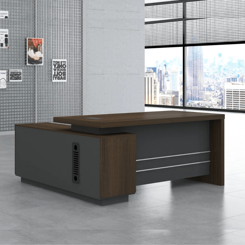 The clean lines and refined finish create a modern, professional look. The desk complements contemporary, minimalist, and corporate office interiors. Its elegant design enhances office décor while providing a functional and comfortable workspace for executives, managers, and professionals.