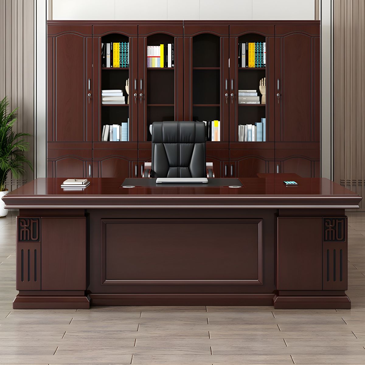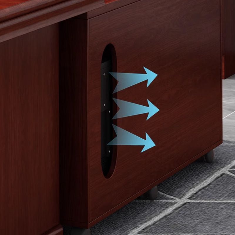 This executive desk also includes smart cable management features, helping you maintain a clutter-free environment by keeping wires and cords neatly tucked away. Optional built-in storage drawers or side cabinets provide additional functionality, giving you space to store documents, stationery, and personal items securely, right at your fingertips.