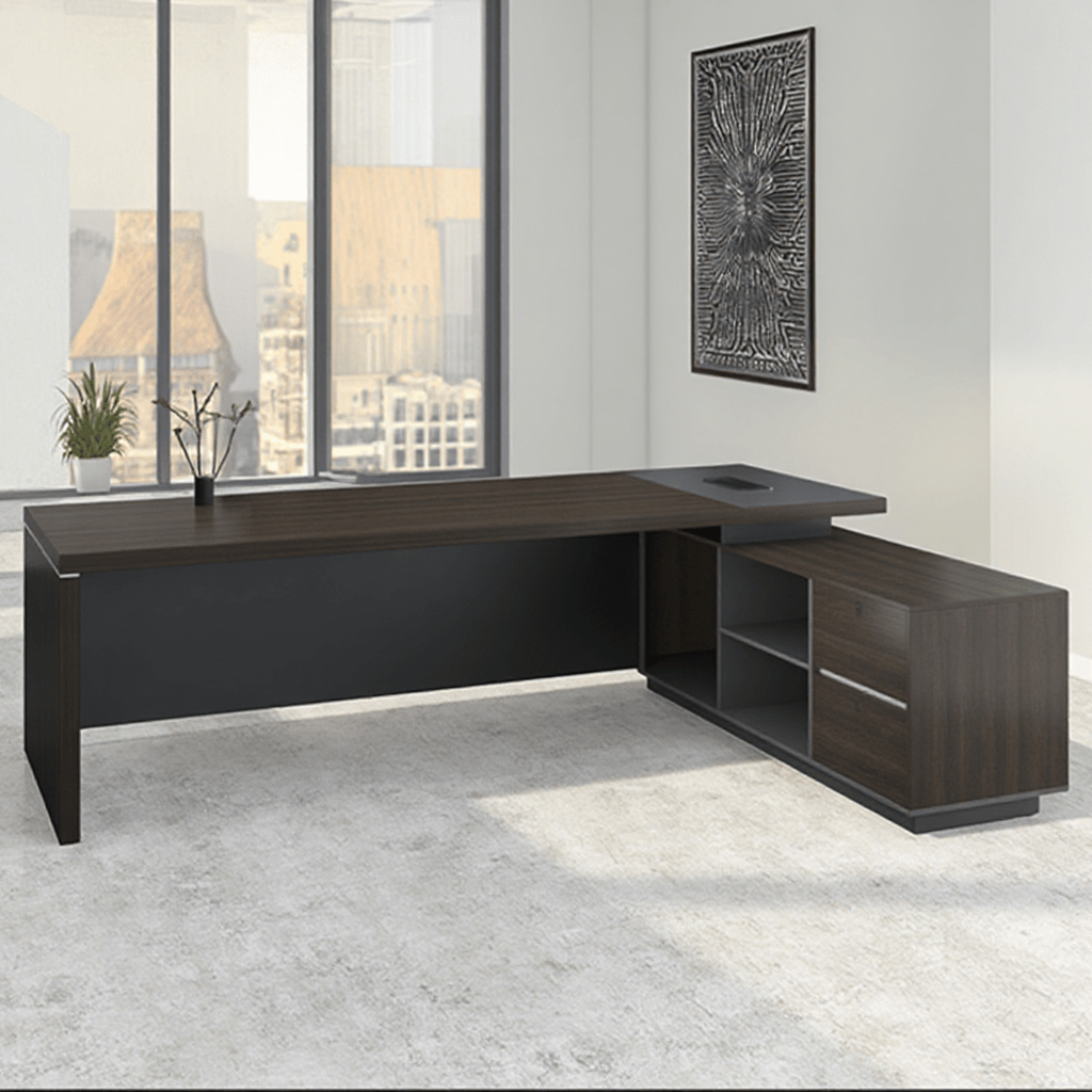 Constructed with high-quality materials, this executive desk is built to last. Its sturdy frame provides excellent stability and can handle daily use without sagging or wobbling. The scratch-resistant surface maintains a professional appearance over time, even with heavy use.