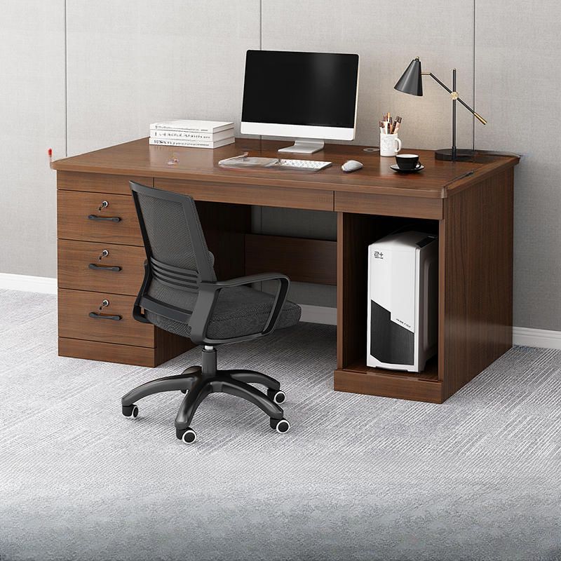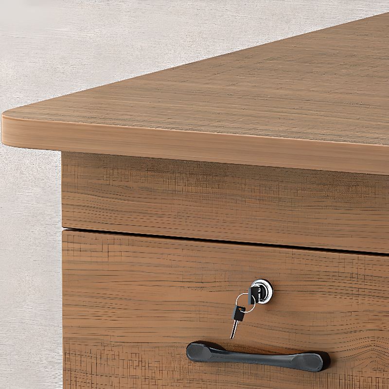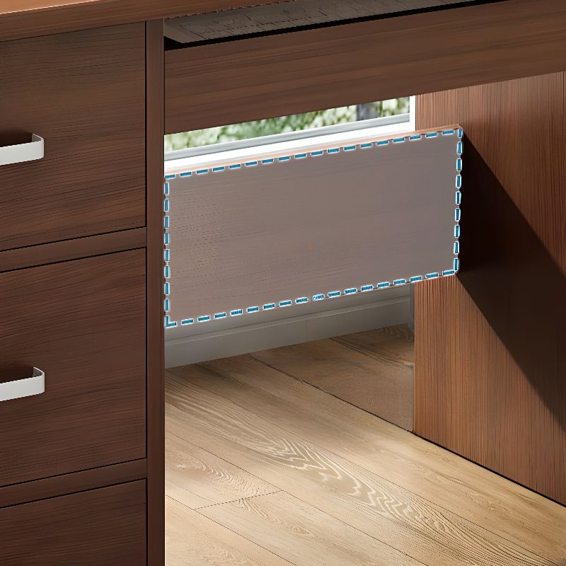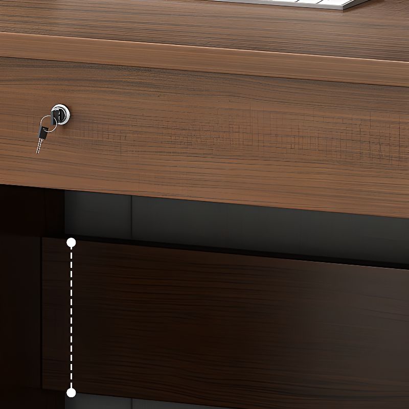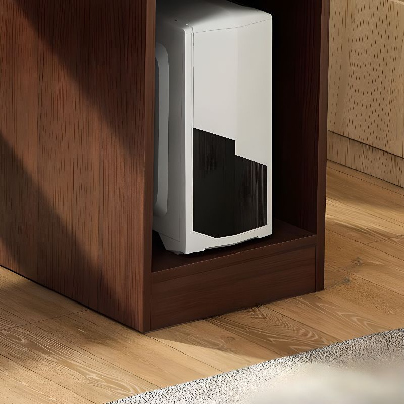 A premium wood veneer or melamine finish (depending on model) resists scratches and stains. It stays clean and polished with minimal maintenance. Built-in drawers and lockable cabinets keep your essentials organized and secure. Cable management systems reduce wire clutter and maintain a neat, professional look.