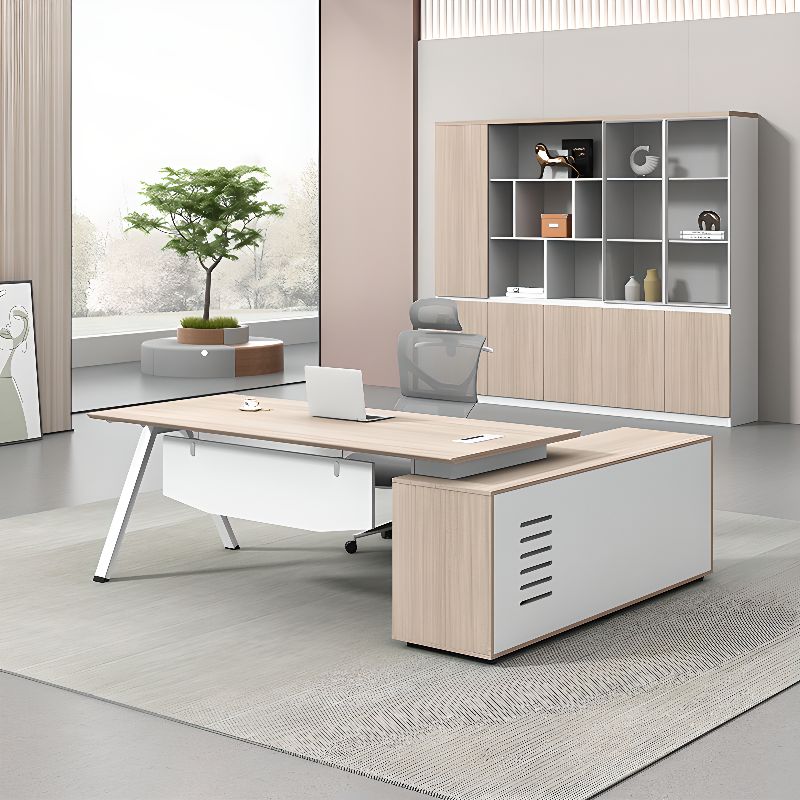 The integrated extension adds extra storage or workspace, perfect for additional items like files, printers, or office accessories. -