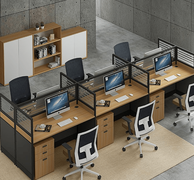 With its sleek and contemporary design, this modular workstation fits seamlessly into any corporate or co-working environment. Neutral finishes, clean lines, and thoughtful partition panels enhance the professional look of your office while supporting a collaborative work culture.