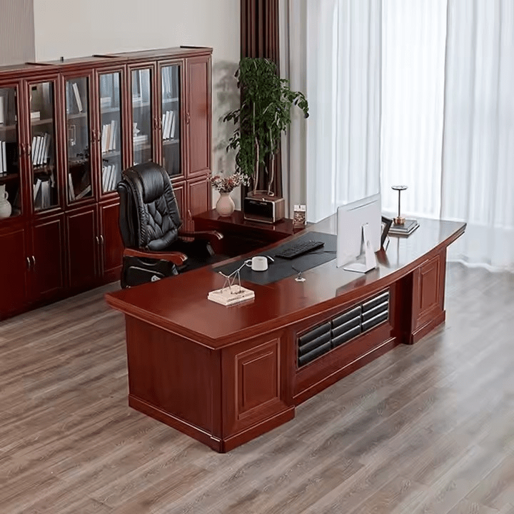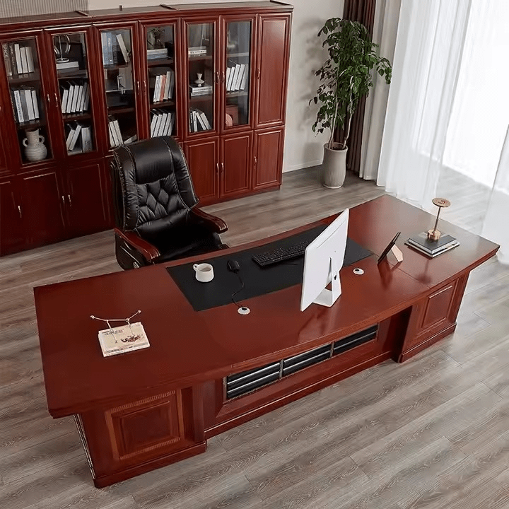 Designed for discerning professionals, this expansive office desk combines luxurious materials with purposeful design. The polished mahogany surface brings a commanding visual elegance, instantly elevating any executive office or sophisticated home workspace. Whether you’re leading a team, closing deals, or deep in focused strategy, this desk provides the space, style, and substance to match your ambition.