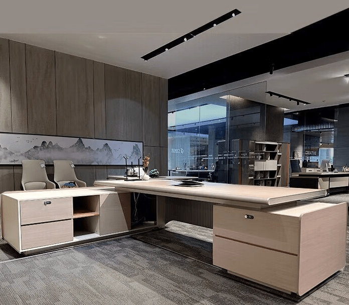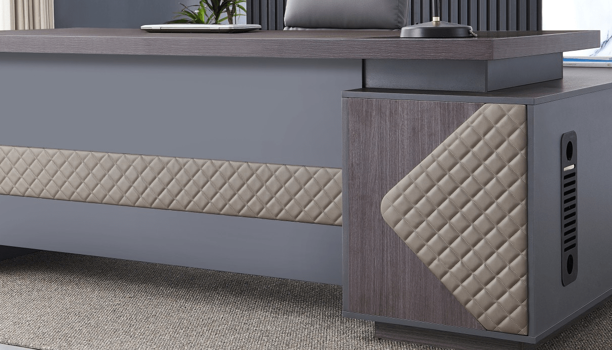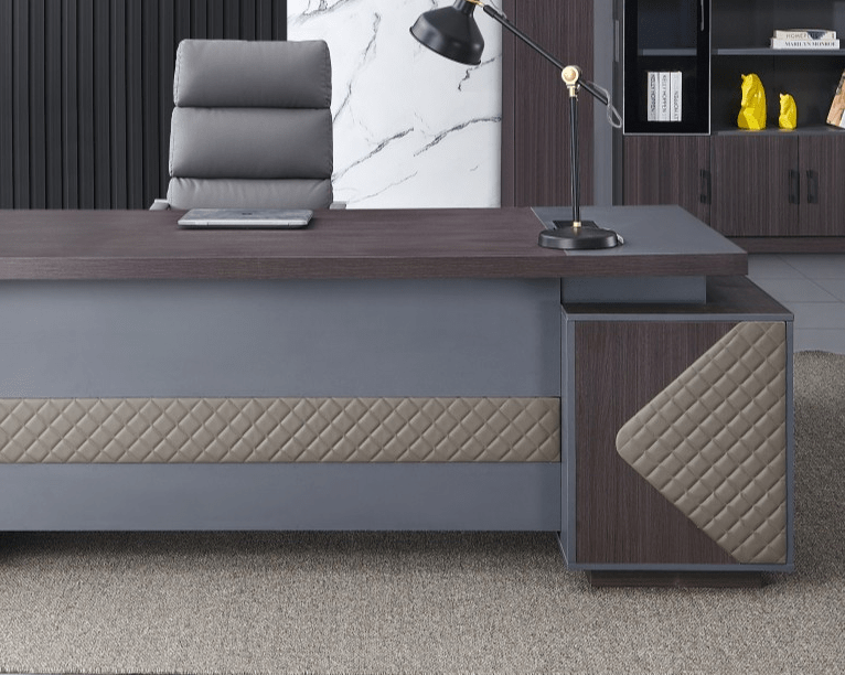 Crafted from premium materials, this desk combines durability with elegance. Its robust construction ensures long-lasting stability, while the smooth, scratch-resistant tabletop provides a polished surface for daily office use. Integrated storage options, including drawers and cabinets, keep essentials organized and within easy reach, while cable management features maintain a clutter-free and professional appearance.