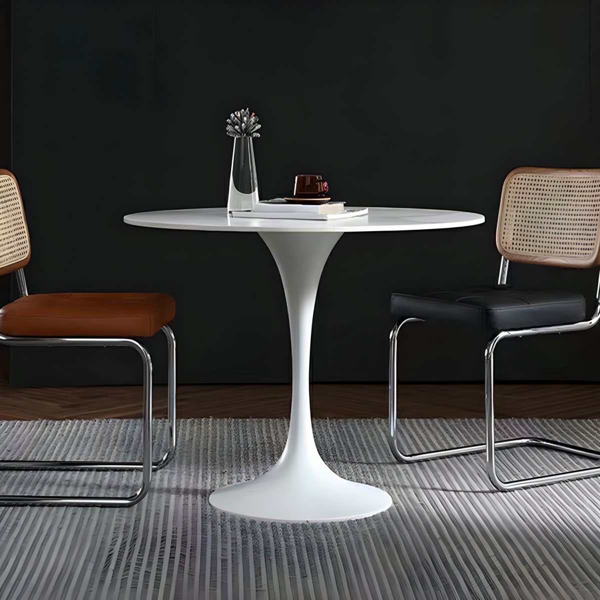 The set features a beautifully crafted table with a smooth, durable tabletop made from premium materials such as molded wood, high-quality laminate, or tempered glass, depending on your preference. Its clean, minimalist lines are complemented by sturdy wooden or metal legs, providing exceptional stability and a contemporary flair that suits a variety of interior décor styles.