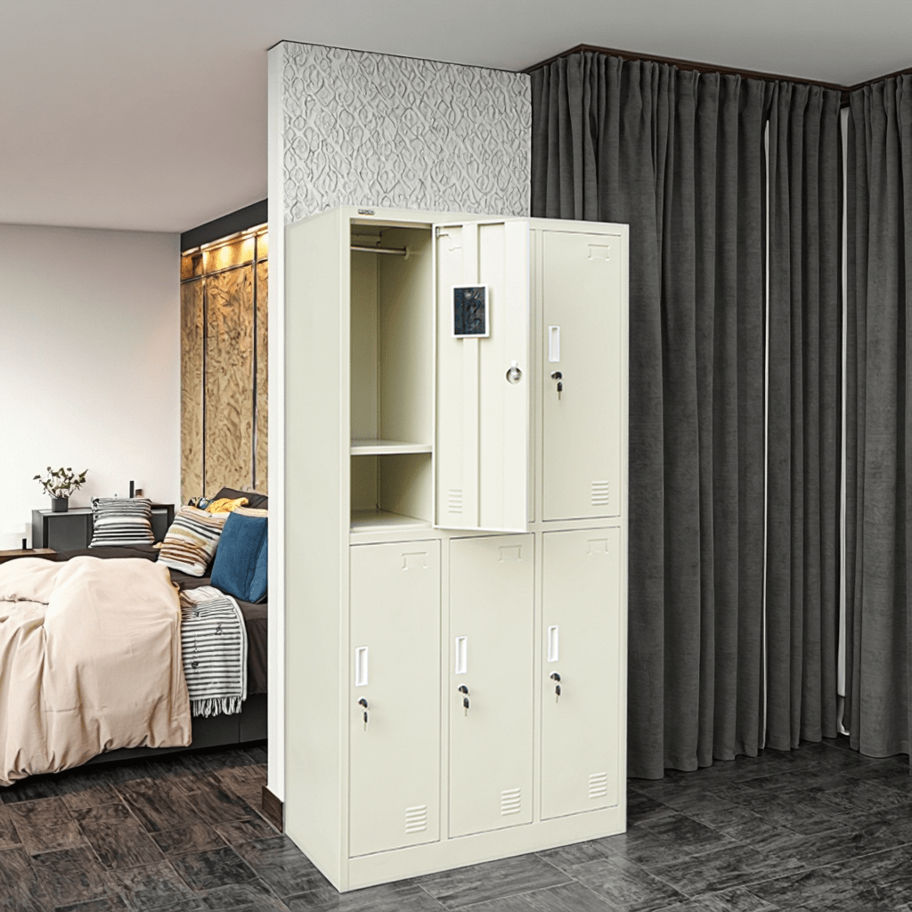Constructed with high-quality metal, the cabinet offers exceptional strength and long-lasting performance. Its powder-coated finish ensures resistance against rust, scratches, and daily wear, maintaining a polished and professional appearance even in high-traffic areas. The six spacious compartments provide ample room to store files, documents, office supplies, personal belongings, and more, keeping everything neatly organized and easily accessible.