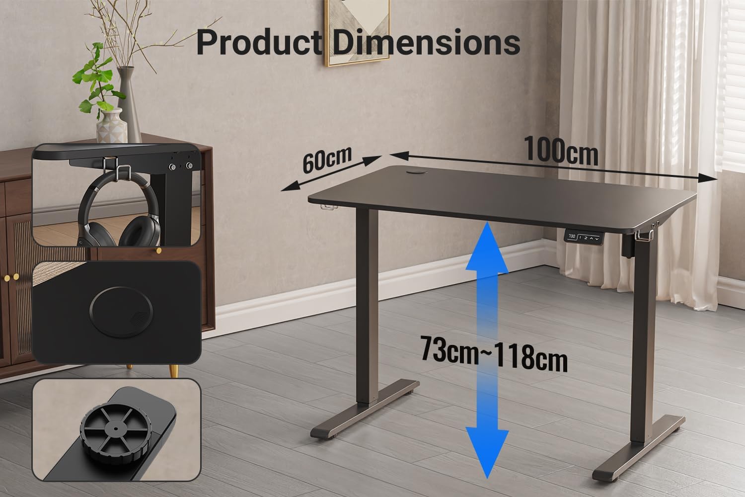 Electric Height Adjustment: Smooth and quiet motorized lift system for seamless transitions.