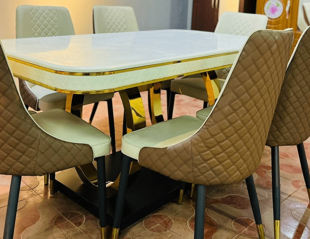 Elevate your dining area with the Elegant 6-Seater Luxury Marble Dining Table. Its stunning marble tabletop and refined design create a sophisticated atmosphere. Perfect for family dinners, formal gatherings, or entertaining guests, this table combines style, durability, and functionality in one statement piece.