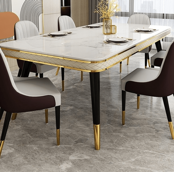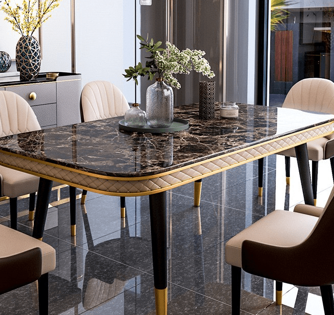 This marble dining table combines sleek sophistication with structural integrity. Its robust frame and solid base—available in metal, wood, or gold-accented finishes—provide exceptional stability while adding a touch of modern charm. Whether you prefer a minimalist aesthetic or a more opulent look, the Elegant Marble-Top Dining Table seamlessly adapts to your home décor.