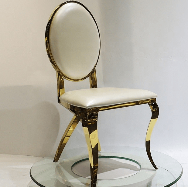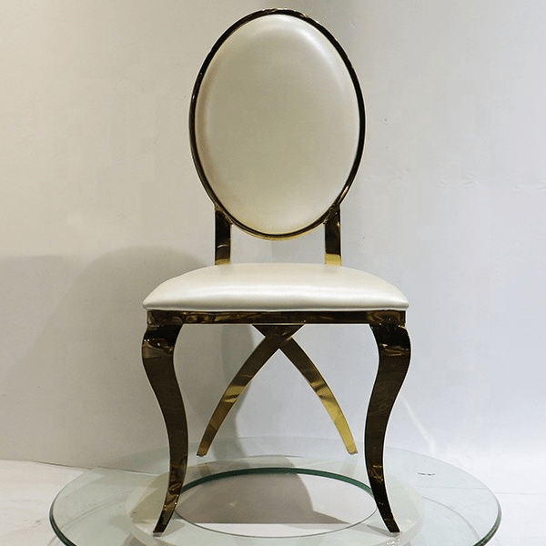 Built from high-quality metal with a premium gold coating, this chair ensures strength and stability. The seat and backrest are ergonomically shaped to provide comfort for long hours of sitting. Its scratch-resistant finish keeps it looking new even after multiple uses, making it a reliable choice for event planners and venues.