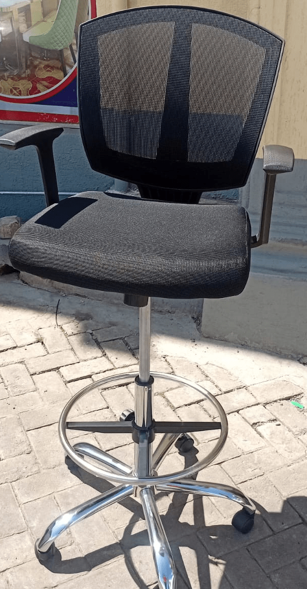 Crafted with high-quality materials, the chair features a sturdy frame and durable upholstery built for long-lasting use in busy office environments. The adjustable height mechanism allows for customized seating, ensuring optimal alignment with high counters or desks. A supportive backrest and cushioned seat deliver comfort for extended periods, while the stylish design complements modern office interiors.