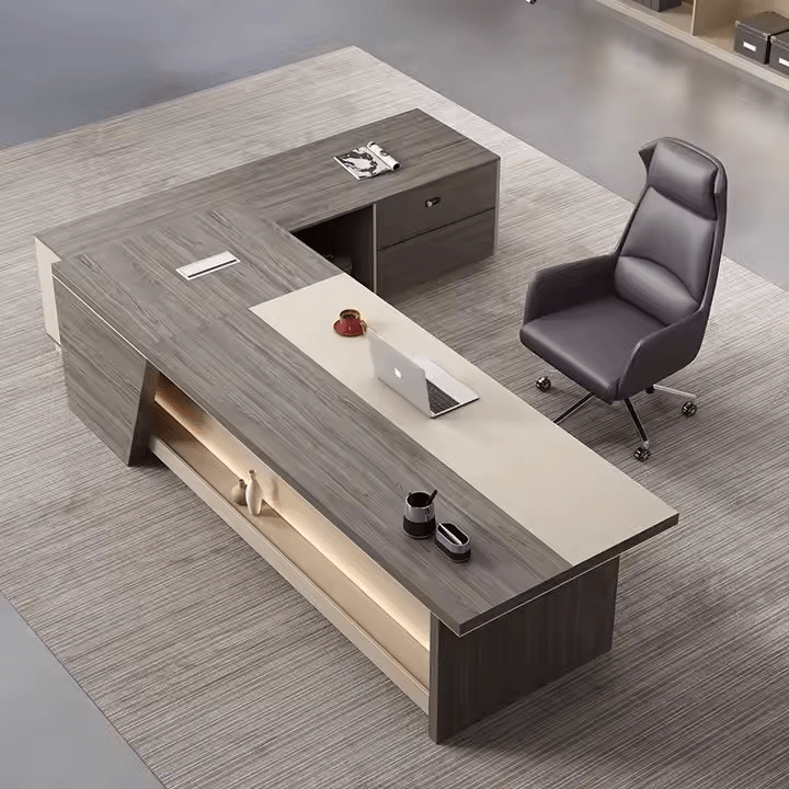 - Built-in drawers and compartments provide easy access to essential files and office supplies.