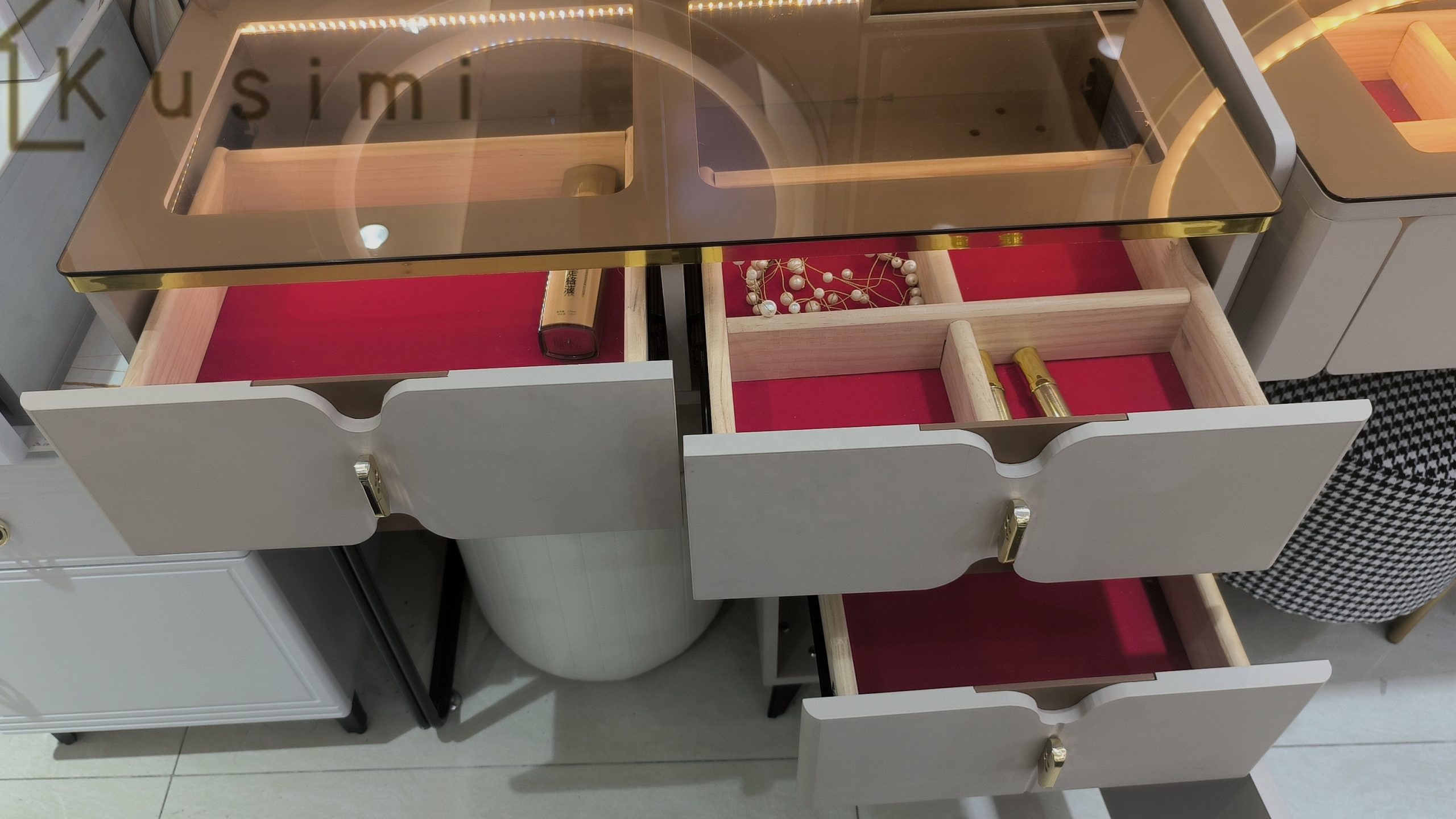 Multiple Storage Drawers: Organize cosmetics, jewelry, and more