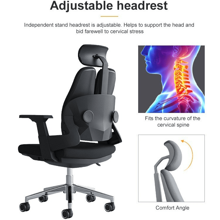 This ergonomic office chair features a contoured orthopedic backrest. It follows the natural curve of your spine. Built-in lumbar support reduces back strain and improves sitting posture. The adjustable headrest supports your neck and prevents stiffness. You feel relaxed even during extended desk work.