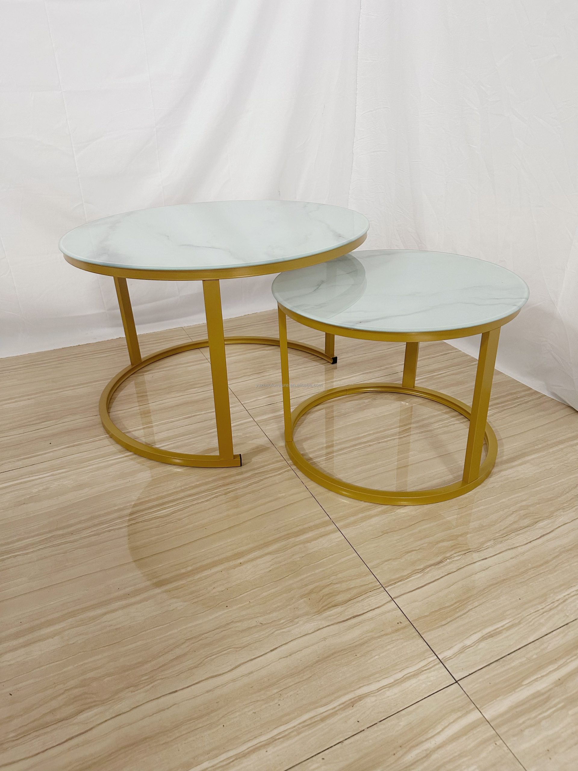 This set includes two tables of different sizes that nest neatly together. Use them separately to create flexible layouts for your living room. When space is tight, simply tuck the smaller table under the larger one to maximize floor area.