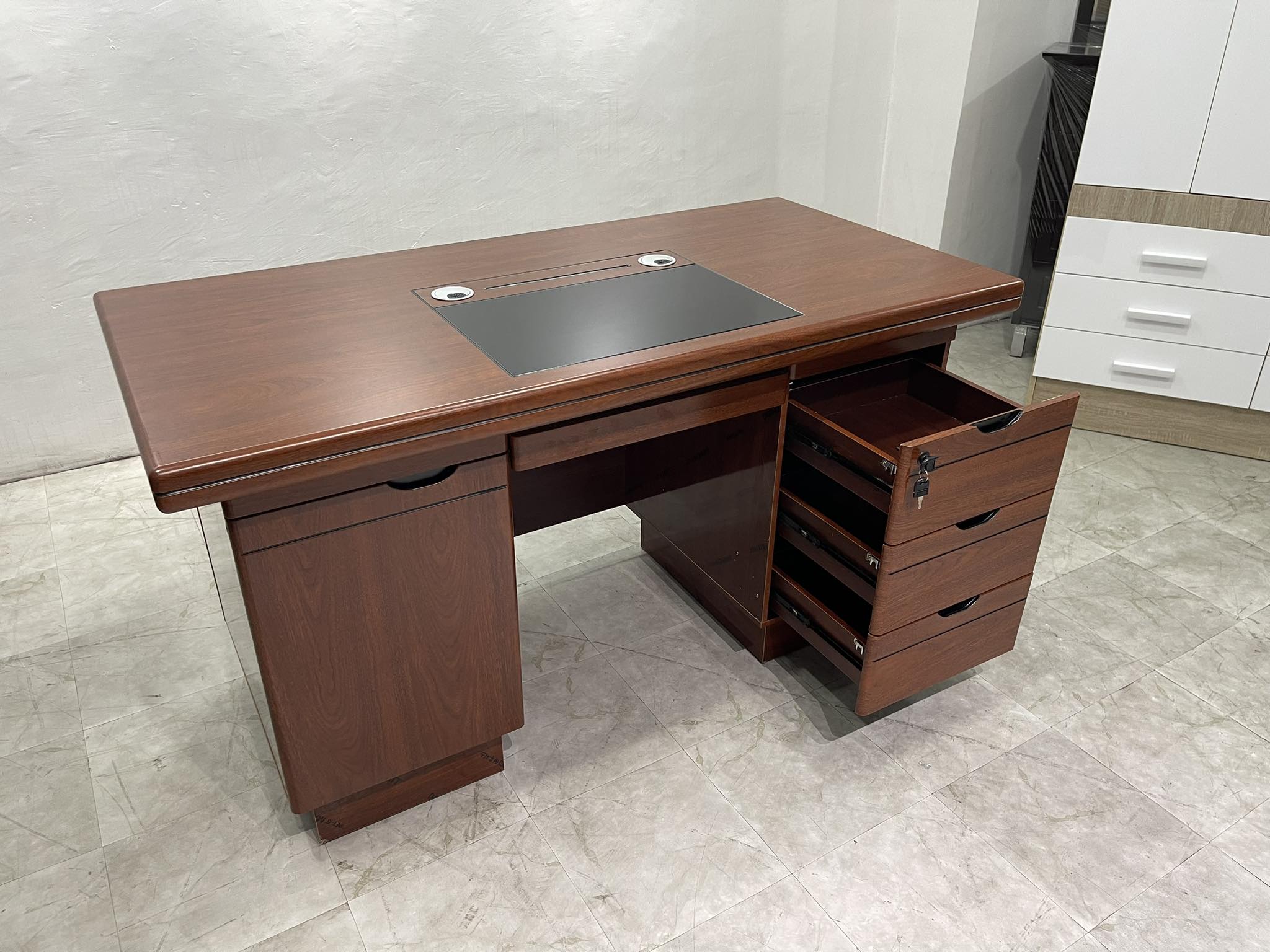 Elevate your workspace with the Sleek Mahogany Boss Desk, a statement piece designed for professionals who appreciate quality, style, and efficiency. Crafted from rich mahogany, this desk offers a luxurious yet functional workspace that exudes authority and sophistication.