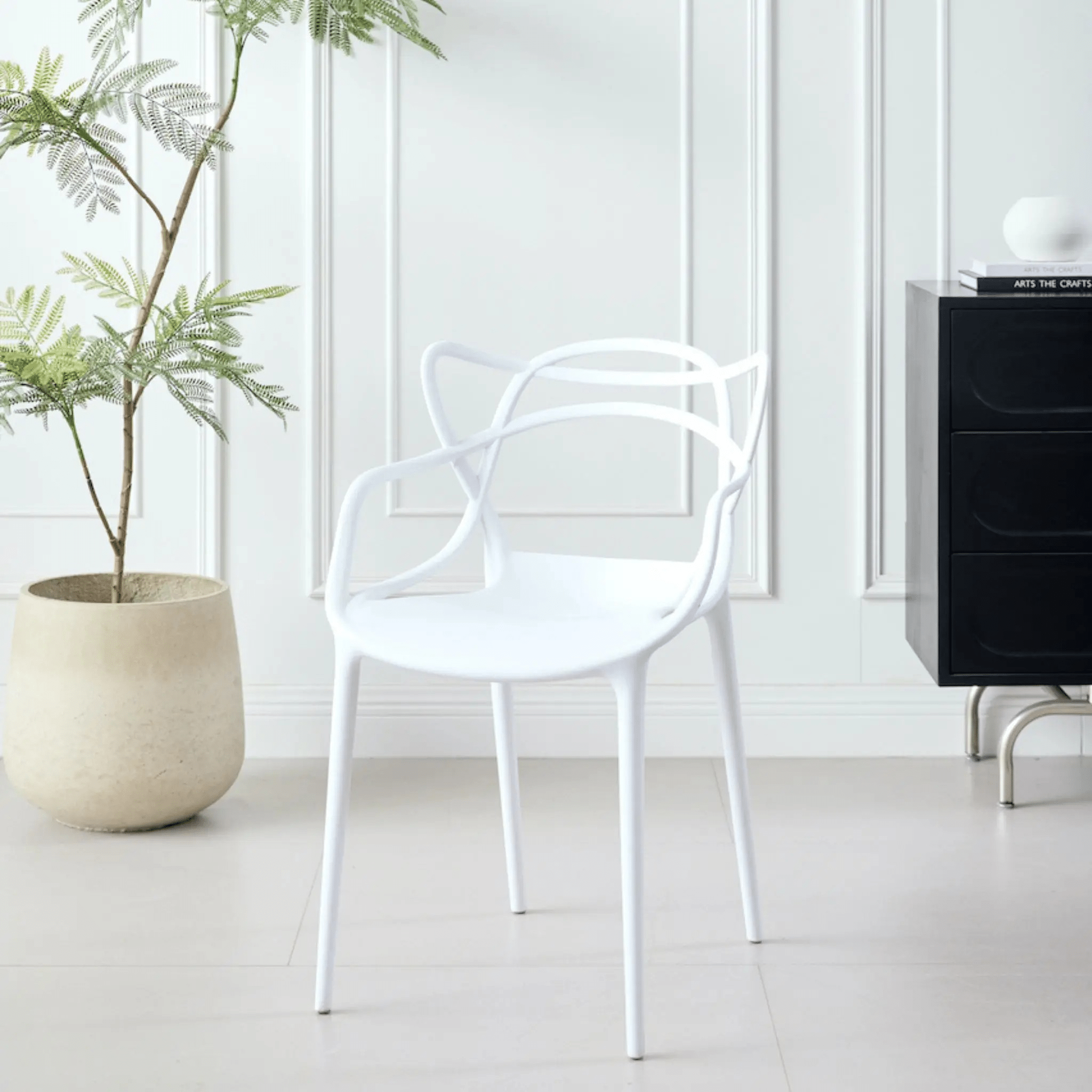 Clean lines and a crisp white finish create a contemporary and elegant aesthetic. The chair fits seamlessly into modern, minimalist, or eclectic interiors. Its neutral color ensures it complements a variety of décor styles, making it ideal for dining rooms, kitchens, offices, and multipurpose spaces.