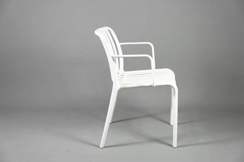 Featuring a simple yet elegant design, the chair’s crisp white color complements all types of outdoor décor—from modern and coastal themes to traditional garden aesthetics. The smooth, curved lines and open backrest enhance airflow while delivering a timeless look that works in both residential and commercial settings.